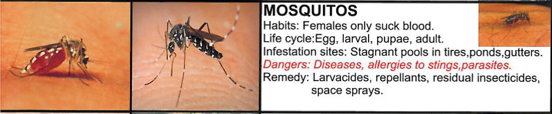 The most common mosquitoes are the Malaria, yellow fever and common house